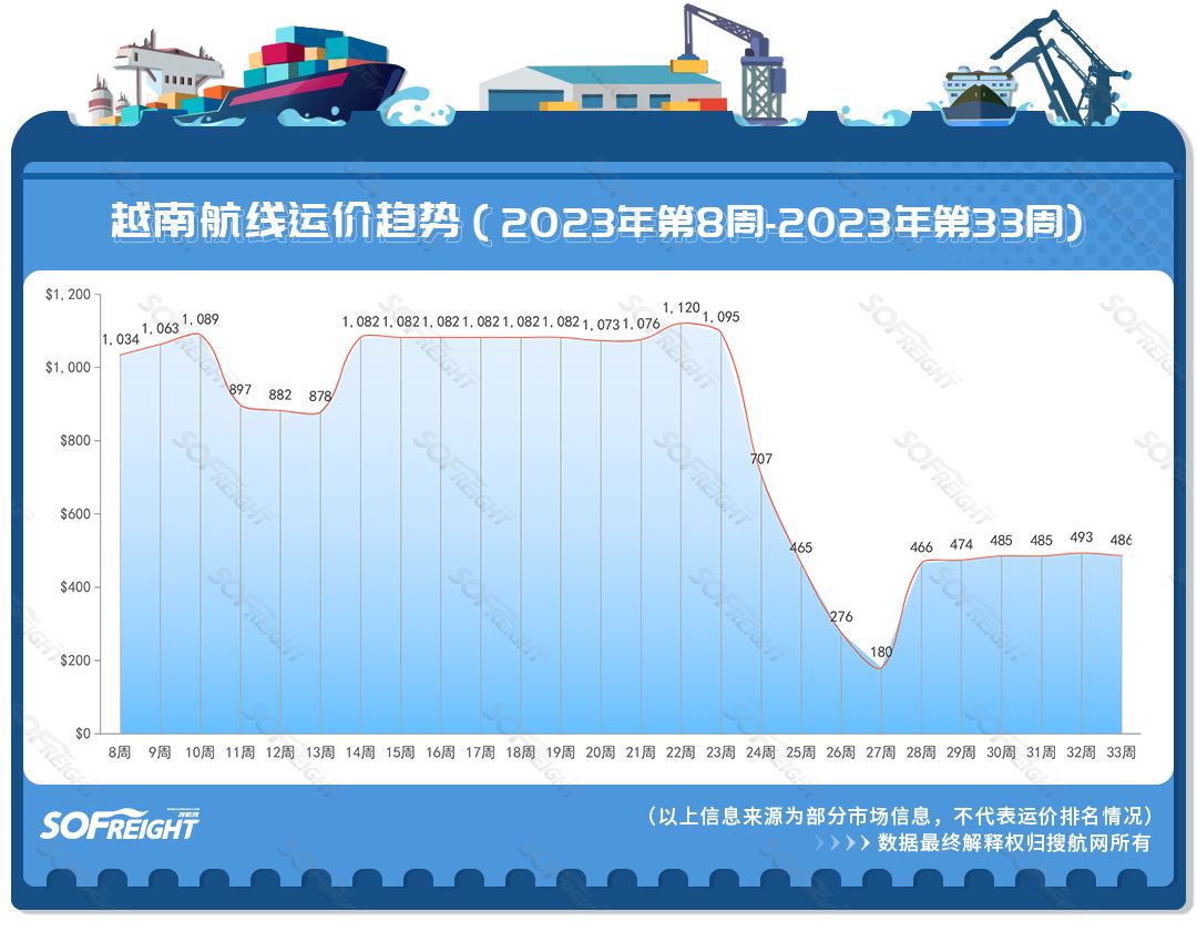 搜運(yùn)費(fèi)發(fā)布2023年第33周運(yùn)價(jià)趨勢(shì)(目的地篇)